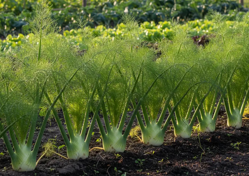 Quando le piante hanno preso vigore, rincalza leggermente la base per favorire l’imbianchimento naturale del grumolo. Non esagerare: il ristagno alla base favorisce marciumi. La raccolta avviene quando il grumolo è pieno e sodo al tatto. Taglia alla base, elimina le foglie esterne rovinate e raffredda in luogo ombroso e ventilato. In frigo, in sacchetto forato, il finocchio mantiene croccantezza per diversi giorni. In cucina esalta il profumo anice con cotture brevi o crudo in insalata: un premio alla cura data dal trapianto a Settembre.